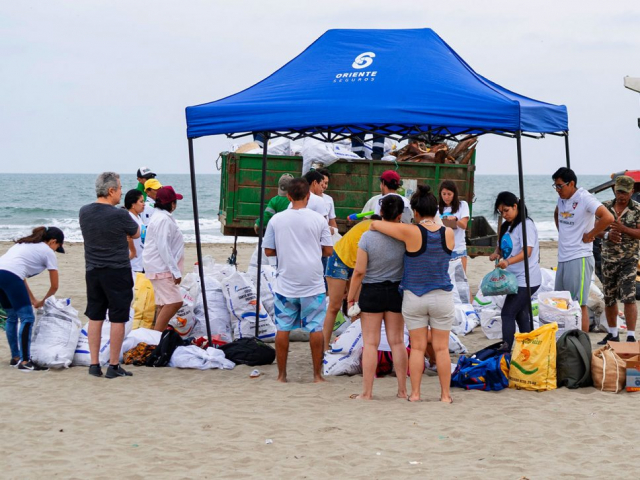 En contexto del Día Internacional de la Limpieza de Playas, Oriente Seguros invitó a uno de sus socios estratégicos, Ecuaprimas a participar en uno de los puntos de limpieza convocados por la Fundación Mingas por el Mar, donde estuvieron presentes alrededor de 102 voluntarios, el área de playa limpiada fue de 1,5 Km y se logró recolectar 3.713 objetos inventariados y clasificados en 125 sacos, sumando un total de 388 Kg de desechos.